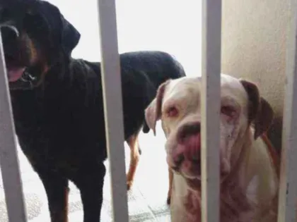 Athila e Athena: Rottweiler e Bulldog para adoção em Maceió