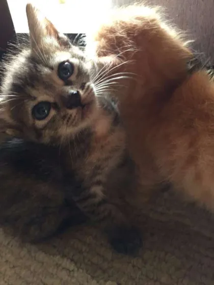 Eles possuem 2 meses, ja comem ração e usam a caixa de areia.