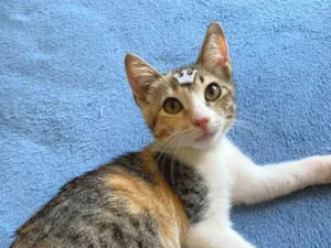 Mia, uma encantadora gatinha de 80 dias, é afetuosa e brincalhona. Pronta para um lar amoroso, adote e faça parte da vida dela.