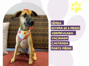 Adote a Lili, uma cadela SRD de 2 a 6 meses. Castrada, vacinada e carente de amor. Venha conhecer nossos adoráveis doguinhos em busca de um lar.