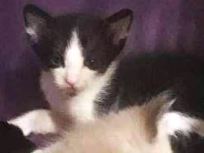 Nós somos uma gatinha preta e um gatinho preto e branco, ainda estamos aprendendo a interagir com o mundo mas já comemos comida molhada e já fazemos necessidades na caixinha. Assim que começarmos a comer ração seca podemos arranjar uma casinha, e do jeito que estamos crescendo rápido isso pode acontecer em menos de uma semana!