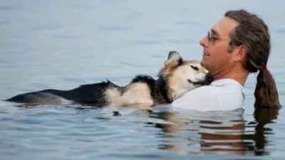 Na imagem original, capturada pela fotógrafa Hannah Stonehouse Hudson, John Unger e Schoep aparecem abraçados, nadando tranquilamente no Lago Superior, em Wisconsin, nos Estados Unidos. John o levava, havia mais de um ano, para nadar no rio, o que aliviava as dores nas articulações causadas pela artrite.
