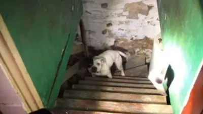 Ela foi salva após o novo inquilino chegar até a casa e abrir a porta que dá para o porão depois de ouvir ruídos e sentir uma forte cheiro desagradável. Ele pegou uma lanterna e ficou chocado com o que viu.