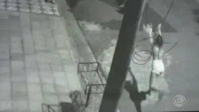 Imagens de câmera de segurança mostram uma jovem jogando um gato em direção a um cachorro, no fim da tarde de segunda-feira (22), no Jardim Simus, em Sorocaba (SP). (Assista ao vídeo abaixo)