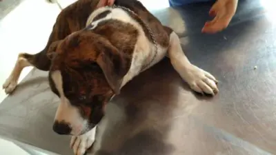 O animal foi levado a uma clínica veterinária, que atestou a situação de maus-tratos e uma grande quantidade de carrapatos.