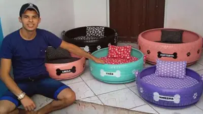 Amarildo Silva é um jovem de 22 anos que vive em Campina Grande, na Paraíba. Há pouco mais de um ano, ele teve uma ideia que considera simples, mas que faz toda a diferença para o meio ambiente e para nossos melhores amigos: ele reutiliza pneus velhos para fazer lindas caminhas para animais. O trabalho fica lindo e está rendendo frutos, Amarildo já conseguiu vender mais de 500 unidades e forneceu um lugar aconchegante para os animaizinhos. Em entrevista para o site Razões Para Acreditar, ele disse que sonha em ter condições de ampliar os negócios: “Já vendi mais de 500 unidades de caminhas para cães e gatos. Só não vendo mais porque não tenho estrutura para vender fora do Estado, mas tem muitas pessoas pedindo de todo o Brasil, inclusive de muitos países aqui da América, da Europa e da Ásia”. Até pouco tempo atrás, o jovem ainda não conseguia se dedicar 100% ao negócio, já que dividia seu tempo entre seu projeto pessoal e o emprego de operador de caixa em uma rede de atacados. Com isso, ele precisava dedicar as manhãs livres para a fabricação das camas. Porém, no início de abril, ele tomou uma decisão: Saiu do emprego para se empenhar a seu próprio negócio.