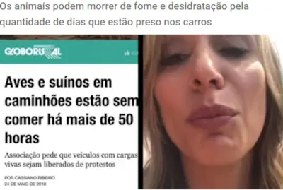 “Amigos de todo o Brasil, me ajudem!!! Caminhoneiros greve é um direito de vcs! Mas pelo amor de Deus, n façam esta crueldade!! Eles são vítimas indefesas!!! Liberem os animais!