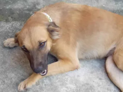 Cachorra castrada, de pelagem caramelo e olhos cor de mel. Meiga e vigilante, é ótima para proteger sua casa ou sítio. Escolha ideal!