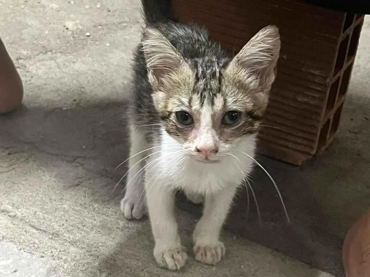 Adoção de filhote encantador resgatado de carro. Gato SRD-Vira Lata, dócil e sociável, busca lar amoroso. Ajude a mudar sua vida e compartilhe!