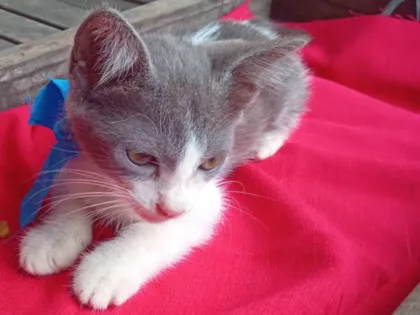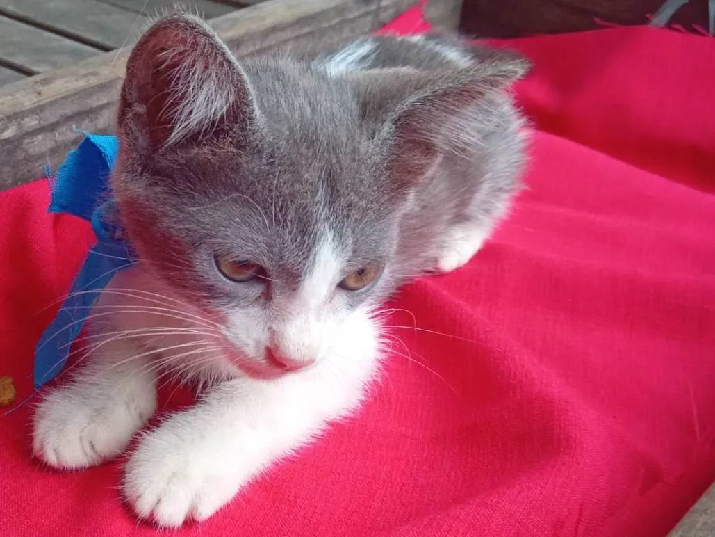 Adoção de Flora, uma gata fêmea de 2 a 6 meses, com olhos azuis. Vermifugada e dócil, ela busca um lar cheio de amor em Fortaleza/CE. Adote!