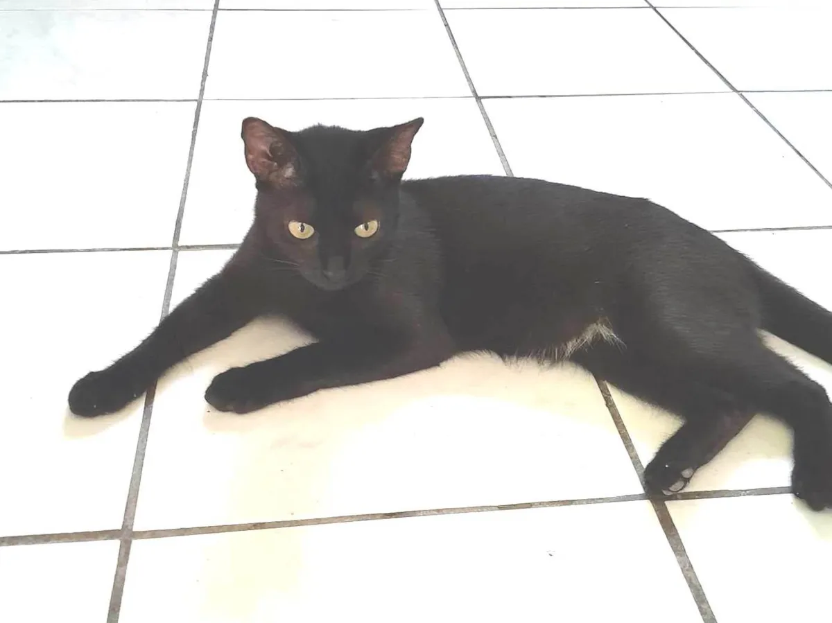 Foxy é uma gata SRD-ViraLata de 2 anos, pelagem preta sedosa, saudável e vermifugada. Adote essa fofura e dê um lar para sempre a ela.