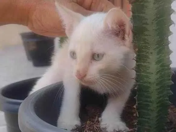 Conheça a Mila, uma gata fêmea de 2 a 6 meses, de olhos azuis e muito dócil. Ela está vermifugada e pronta para encontrar um lar amoroso em Fortaleza-CE.