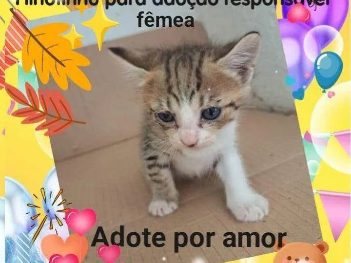 Sociável com outros gatos, essa pequena já demonstra ter um espírito amigável e adora brincar com seus companheiros felinos. Ela come ração e está saudável, pronta para fazer parte da sua vida.