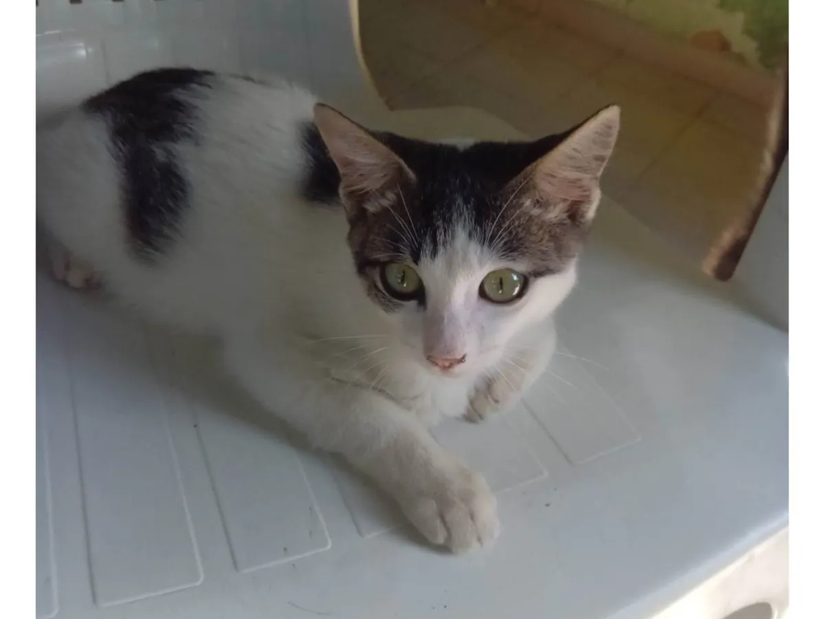 Conheça o Petico, um gato macho de 2 a 6 meses, com olhos verdes, vermifugado, dócil e pronto para dar amor. Adoção em Fortaleza/CE.