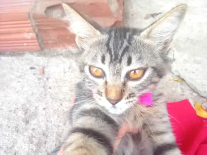 Conheça a Tigresa, uma gatinha SRD de 2 a 6 meses, dócil e independente. Ideal para casa com quintal ou apartamento. Adote e dê amor a ela!