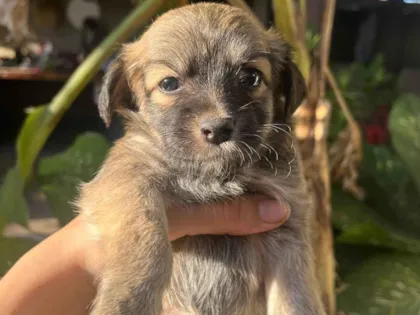Cachorrinho SRD-ViraLata marrom, 2 a 6 meses, dócil e brincalhão, procura lar amoroso. Ideal para famílias com crianças e sociável com todos. Adote!