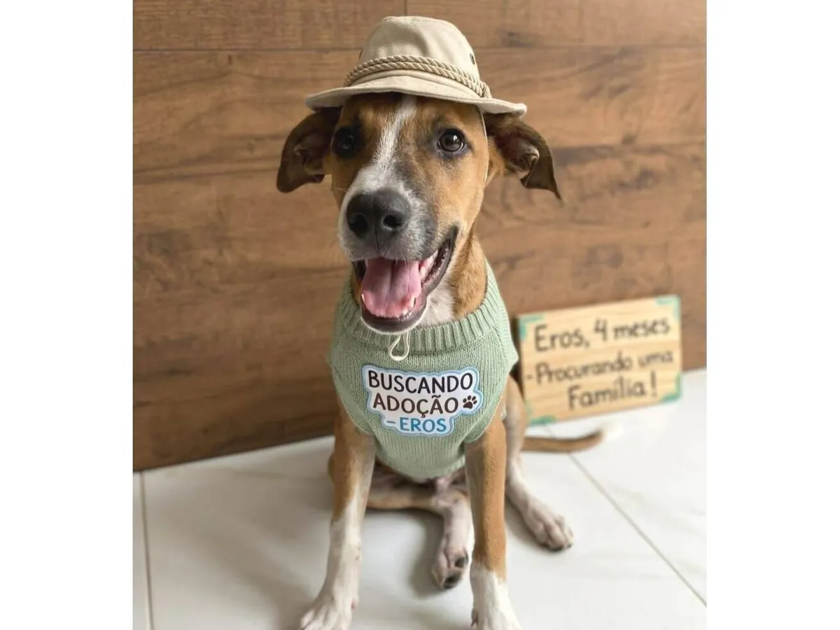 Adote Eros, filhote dócil e calmo. Vermifugado e sociável, ele se encaixa em qualquer lar. Traga alegria para sua casa e faça um novo amigo!