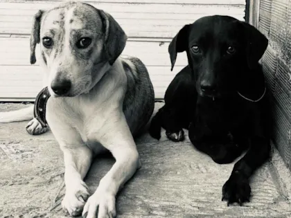 Cadelas resgatadas de maus-tratos! Um situação horrorosa. Há algum tempo cuidamos delas em lar temporário. As cadelas são um pouco medrosas, porém são muito quietas e não são de incomodar em nada. São irmãs e não se separam por nada. Se uma ficar sem a outra, é capaz de acontecer o pior. Elas só precisam de um pouco de paciência até se adaptarem.