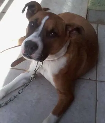 Ela tem 07 meses de vida, raça mista de boxer com outro cão da pelagem caramela curta, mto tranquila, carinhosa e gosta mto de brincar.