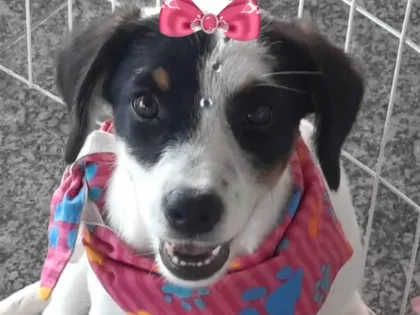 Linda Bebel de cinco meses, porte médio, com castração garantida. Muito dócil e brincalhona. Para adoção responsável. Contato: 98275-8537.