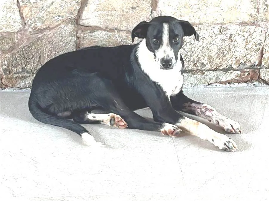 Ele é muito dócil, amável, carinhoso, bonzinho. No atropelamento ele ficou com a patinha de trás machucada. Mas não deixa de ser um cãozinho bem alegre e brincalhão. Convive super bem com uma cachorrinha menor e com um bebê.