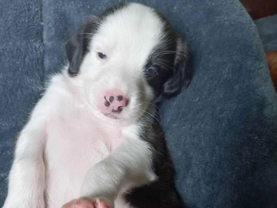 Filhote Tem 40 dias de nascido, desmamou, já come ração, 1° dose da vermifuga, cor preto e branco.