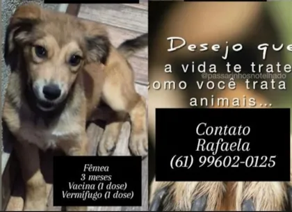 Olá, amigos! Precisamos da sua ajuda urgente! Nossa adorável cadelinha, Filhote, da raça SRD (Vira-lata), está a procura de uma família. Ela tem uma pelagem caramelo e tem menos de 2 meses de idade. A filhote é um verdadeiro amor: possui um temperamento dócil e brincalhão, que encanta a todos ao seu redor.