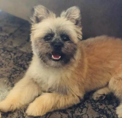 O cachorro veio de uma adoção, é uma mistura de spitz alemão com shitzu, foi criado dentro de casa, come apenas ração, tem em torno de 5 anos, castrado e gosta muito de carinho ”