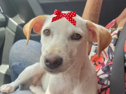 Adoção de Lua, cadela mestica de 7 meses. Linda, dócil e brincalhona, busca um lar amoroso. Confira a chance de ter uma companheira especial!