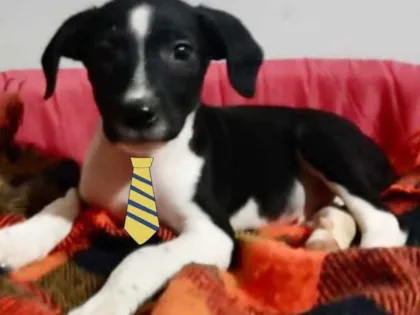 Adote o adorável Max, um cachorro mestiço macho de um mês, de porte médio e cheio de energia. Uma companhia perfeita para sua casa!