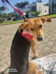 Cadelinha fêmea de 1 ano procura adoção responsável. Carinhosa, brincalhona, sociável com crianças e outros animais. Vacina e vermífugo em dia.