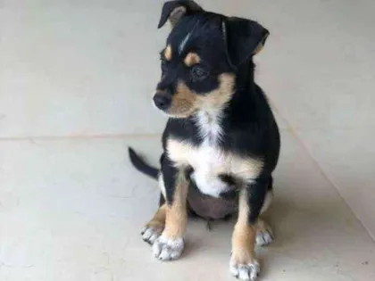Porte pequeno a médio, super feliz e se dá bem com outros animais( cães e gatos).