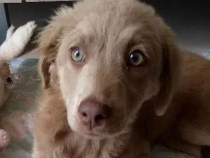 Ela tem a pelagem clara, e olhos claros. Ela é linda de verdade.