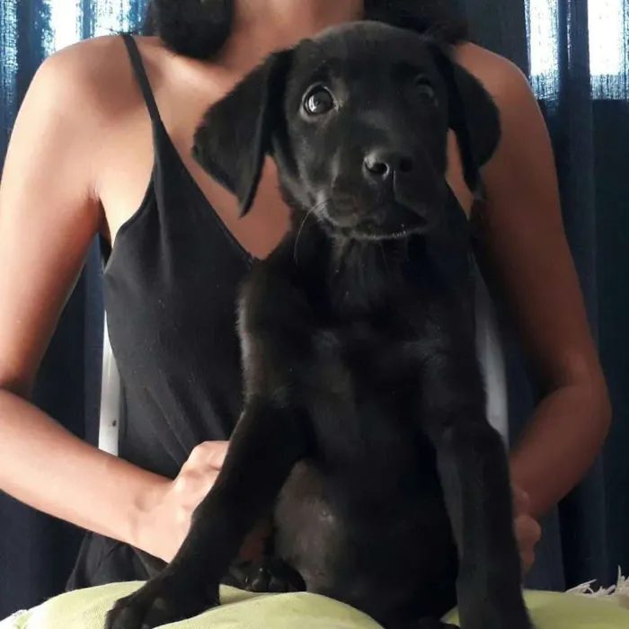 Cadela veio de um resgate, está saudável, adora brincar mas precisa de disposição e cuidados especiais na hora da alimentação, por conta de uma doença congênita de megaesôfago.