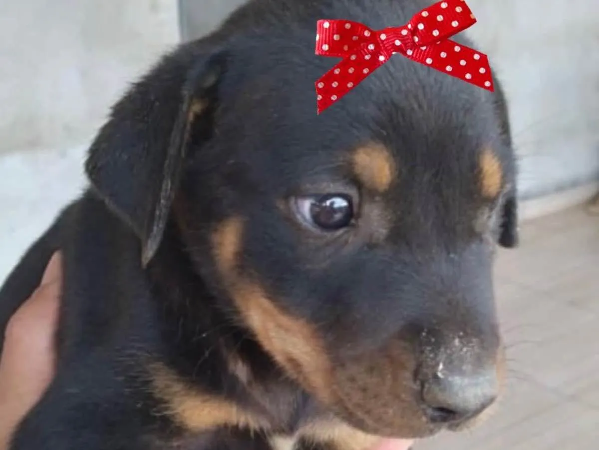 Linda Sofia de um mês, porte médio. Muito dócil e brincalhona. Para adoção responsável. Contato: (62) 99458-1605.