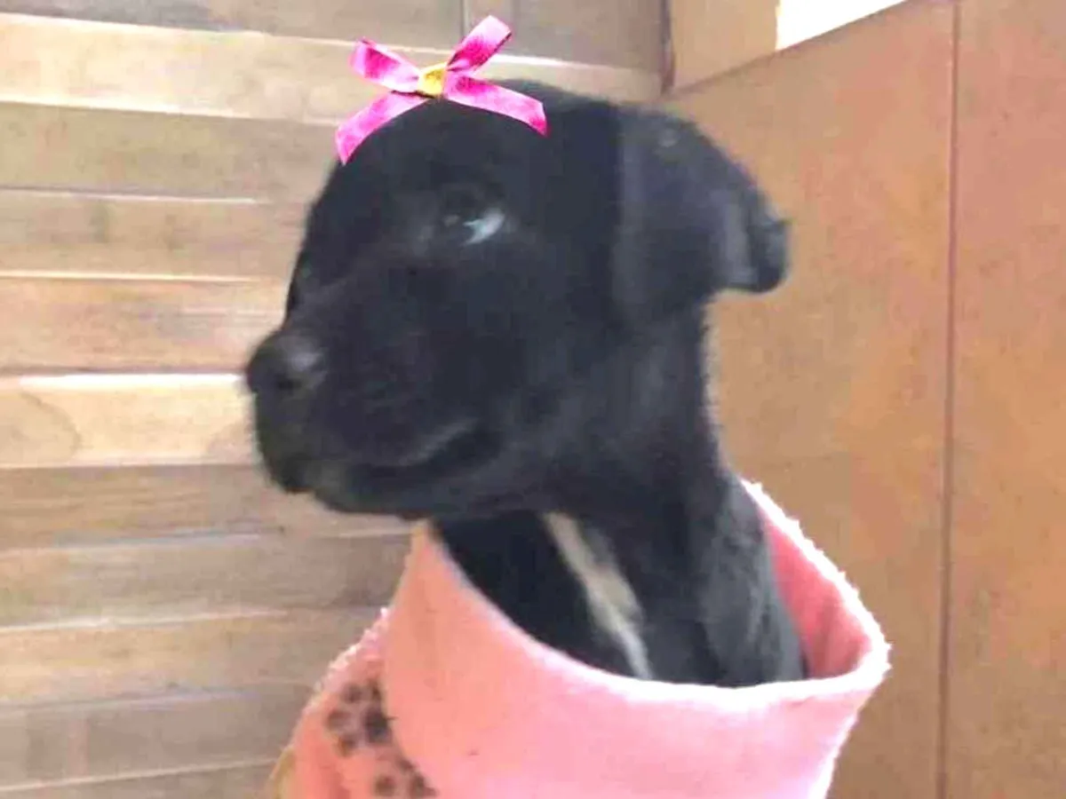 Conheça a linda Tina, uma cadela mestiça de 3 meses. Dócil, brincalhona e porte médio, ela espera por uma adoção responsável em Brasília. Adote amor!