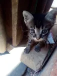 Filhote fêmea rajada com mais de 1 mês de nascida. Para ser adotada, infelizmente não posso ficar porque ja tenho três gatos.