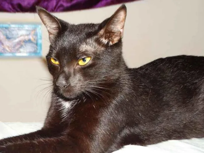 Esta maravilhosa gatinha de pelagem preta brilhante e olhos cor de âmbar, com cerca de 1 ano e 6 meses, está pronta para encontrar um lar onde possa ser a estrela. Com um olhar expressivo e uma postura elegante, ela combina a beleza clássica dos gatos pretos com um espírito vibrante e curioso. Apesar da aparência sofisticada, ela revela um lado aventureiro e ágil, mostrando-se uma excelente escaladora e exploradora que adora observar o mundo de ângulos diferentes.