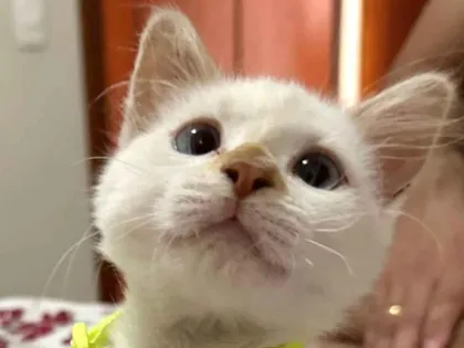 Conheça o adorável Cauã, um filhote de gato SRD de 2 meses. Dócil, calmo e brincalhão, perfeito para famílias com crianças e pets. Adoção responsável.