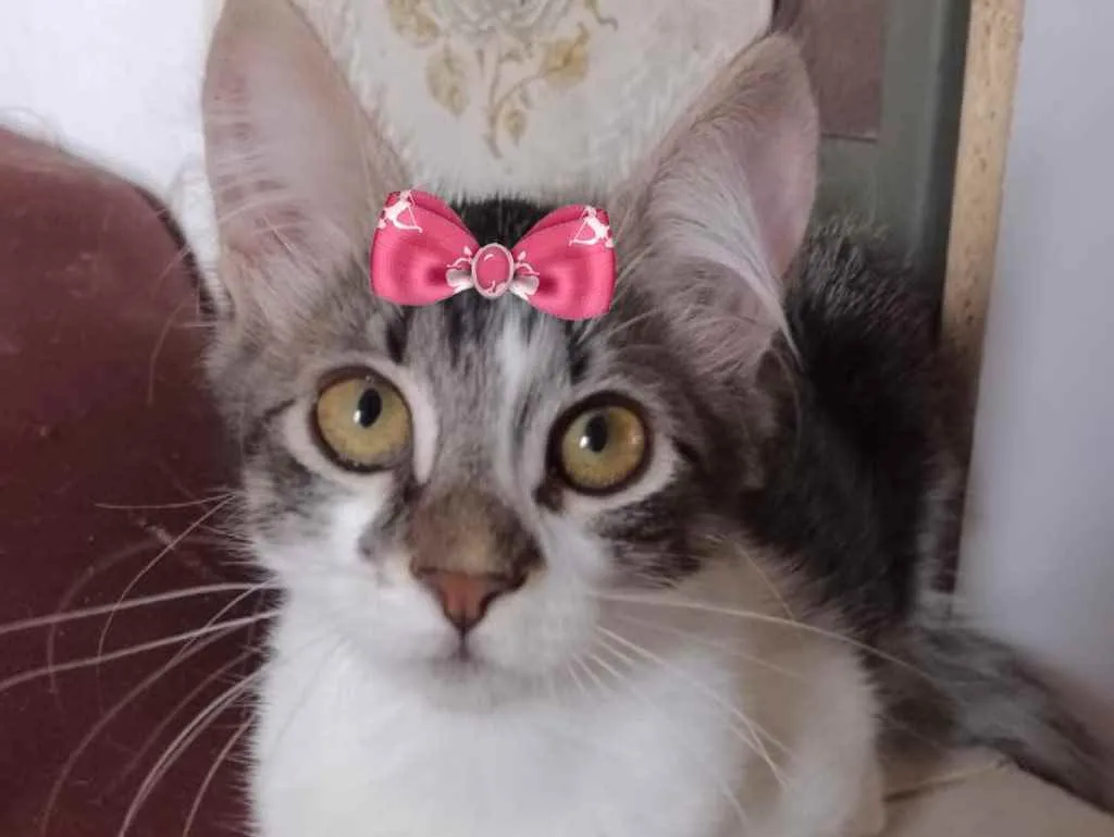 Conheça a linda Cléo, uma gatinha mestiça de 3 meses, super dócil e brincalhona. Ela está à espera de um lar amoroso. Adote com responsabilidade!