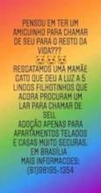 Ver todos Cachorros para adoção em Brasília/DF Ver todos Gatos para adoção em Brasília/DF