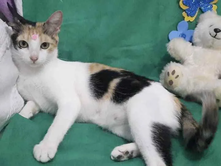 Adote Flor, uma linda gata SRD de 1 ano! Castrada, vermifugada, dócil e brincalhona, está em busca de um lar amoroso. Faça a diferença!