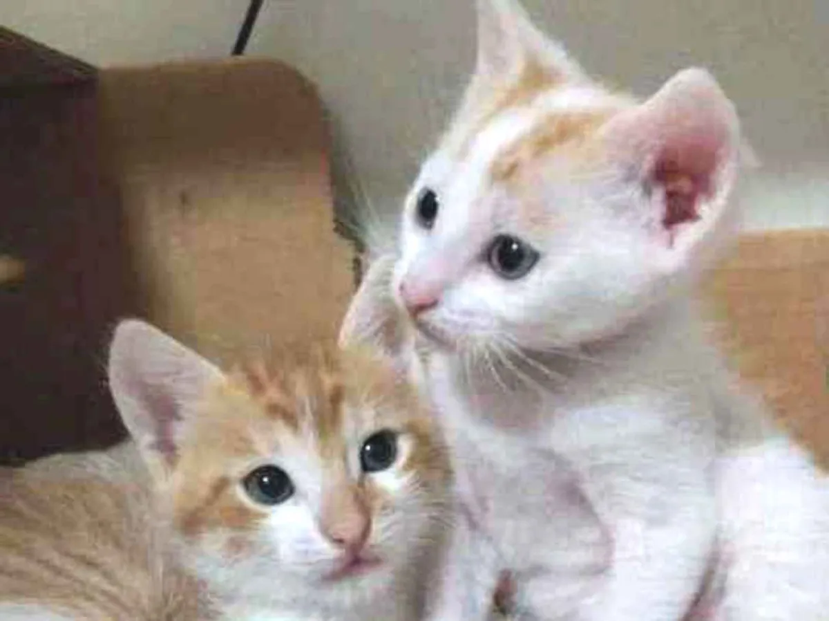 O branquinho é macho, a outra é fêmea. Têm 47 dias, já usam caixinha de areia e comem ração.