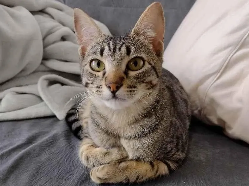 Possui por volta de cinco meses, é vacinado, vermifugado e negativo para fiv/felv. Castração garantida. É extremamente dócil com humanos e outros animais. Utiliza caixa de areia e come ração seca.