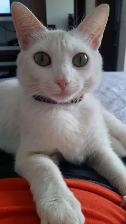 Elas são duas felinas gêmeas, 100% brancas, não castradas e filhotes.