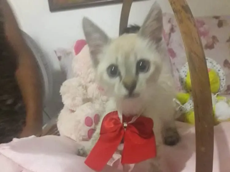 Foi abandonada debaixo de chuva chorando muito, hoje vive em um lar temporário está à procura de um lar definitivo, é uma gatinha muito carinhosa, gosta muito de companhia, adora brincar e ronronar.