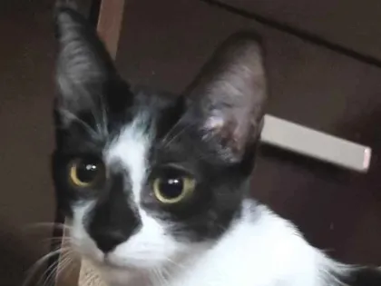 Linda filhote de quase 6 meses, castrada e saudável. FIV e FeLV negativos. Mansa, carinhosa e sociável. Procura lar seguro com termo de adoção.