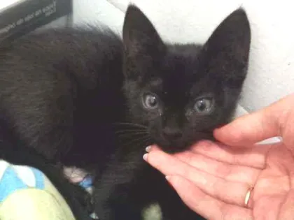 Gatinha super dócil,de pelagem toda preta,usa caixinha e come ração,temos contato para castração a baixo custo.