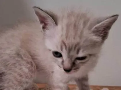 Adote Princesa, gata SRD branca de 2 meses, dócil e sociável. Perfeita para lares com crianças e pets. Traga alegria e amor à sua vida!