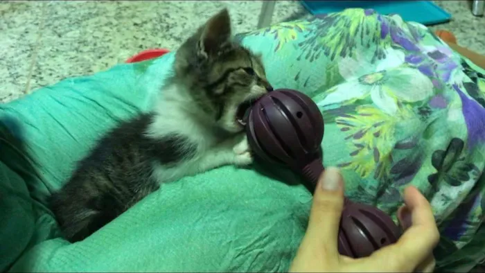 Está saudável, já se alimenta de ração e já está treinado para a caixinha de areia.